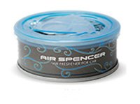 業界初のヒト・フェロモン入り車用芳香剤。清涼感を感じさせるブルーの缶。